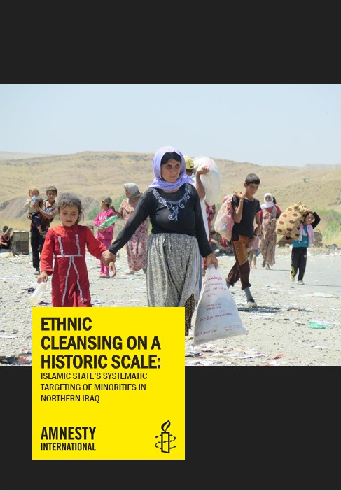 The group that calls itself the Islamic State (#IS# )1 has carried out ethnic cleansing2 on a historic scale in northern Iraq. Amnesty International has found that the IS has systematically targeted non-Arab and non-Sunni Muslim communities, killing or abducting hundreds, possibly thousands, and forcing more than 830,000 others to flee the areas it has captured since 10 -06- 2014.
