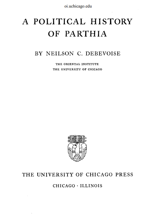 The dynasty of the Arsacids or Parthians ruled Iran/Persia and neighbors from about 247 B.C. to 224 A.D. Contents: 1. The Growth of Parthia; 2. Early Foreign Relations; 3. The Indo-Iranian Frontier; 4. Drums of Carrhae; 5. The Struggle in Syria; 6. Antony and Armenia; 7. The Contest for the Euphrates; 8. The Campaign of Corbulo; 9. Parthia in Commerce and Literature; 10. Trajan in Armenia and Mesopotamia; 11. The Downfall of the Parthian Empire; Rulers: Parthian, Seleucid, Roman Emperors; Map. Compiled by Robert Bedrosian. [1]