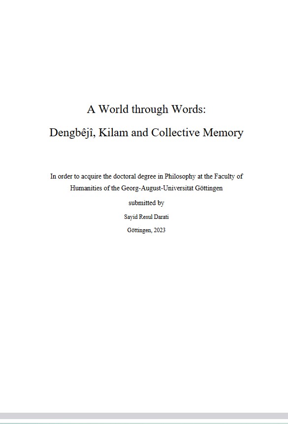 This dissertation analyzes aspects of the dengbêjî tradition among Kurdish-Kurmanj communities in the context of collective memory. It argues that dengbêjî is a means of preserving a considerable number of narratives in collective memory and conveying history through generations. Therefore, the dengbêjî tradition is examined in the context of memory studies, with a special reference to oral history, oral traditions, and collective memory. The study begins with a theoretical discussion regarding literacy and illiteracy, as well as the role of literacy in societies. This paves the way for analyzing the connection between illiteracy and oral culture among Kurdish-Kurmanj people. The aim of this discussion is to draw from existing scholarly works to create a theoretical framework for the topic and to analyze the impact of dengbêjî on the collective memory of a society whose literacy level was low until the last few decades. Dengbêjî is an oral tradition and a method of recounting history among Kurmanji-speaking Kurdish people. By focusing on the connection between memory and history, this dissertation will examine this specific way of remembering, drawing upon memory studies. Consequently, the function and role of dengbêjî in creating a collective memory among Kurmanjs, and the characteristics of this type of oral memory as opposed to written accounts of the past, are analyzed. The dissertation centers on dengbêjî as a particular oral tradition and distinguishes it from other Kurdish oral and musical traditions, such as çîrokbêjî and stranbêjî (lit.: storytelling and singing). This helps to set the tradition apart. The study also delves into the time and location of dengbêjî by comparing it with some other oral/musical traditions, such as ashik and naqqāli from Anatolia and Iran. Furthermore, the period of the tradition, the performance of dengbêjs, and the relationship between performers and the audience are also examined. The collective memory of Kurdish people regarding the Agirî Resistance, which occurred in eastern Turkey around Mount Agirî (Turkish: Ağrı, Armenian: Ararat) between 1926 and 1930, serves as a case study here. To gain a deeper understanding of the topic, certain kilams about the fighters in this resistance are examined. Through these narratives, this dissertation seeks to understand how Kurdish-Kurmanj people have remembered the resistance and its fighters, and how these memories differ from written Kurdish and Turkish accounts. This part of the study also provides insight into the society's perception of their past. This perception differs from the way the past is represented in certain written sources and from today's viewpoint. In this manner, it may pave the way for discussing the role of written documents in the recent history of Kurdish people. Focusing on a specific oral tradition, this dissertation primarily concerns Kurmanji-speaking Kurdish people who mainly reside in the East and Southeast of Turkey, Northern Syria, and partially in Iran and Iraq (which geographically indicates the central and northern parts of Kurdistan), as well as in some small areas in the Caucasus. The research spans approximately one hundred years, specifically from the 1880s to the 1980s. [1]