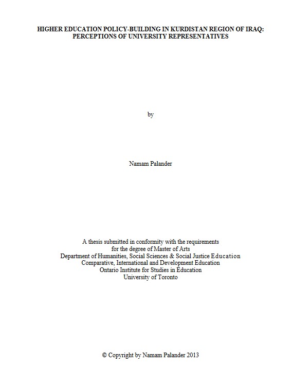 Title: HIGHER EDUCATION POLICY-BUILDING IN KURDISTAN REGION OF IRAQ: PERCEPTIONS OF UNIVERSITY REPRESENTATIVES