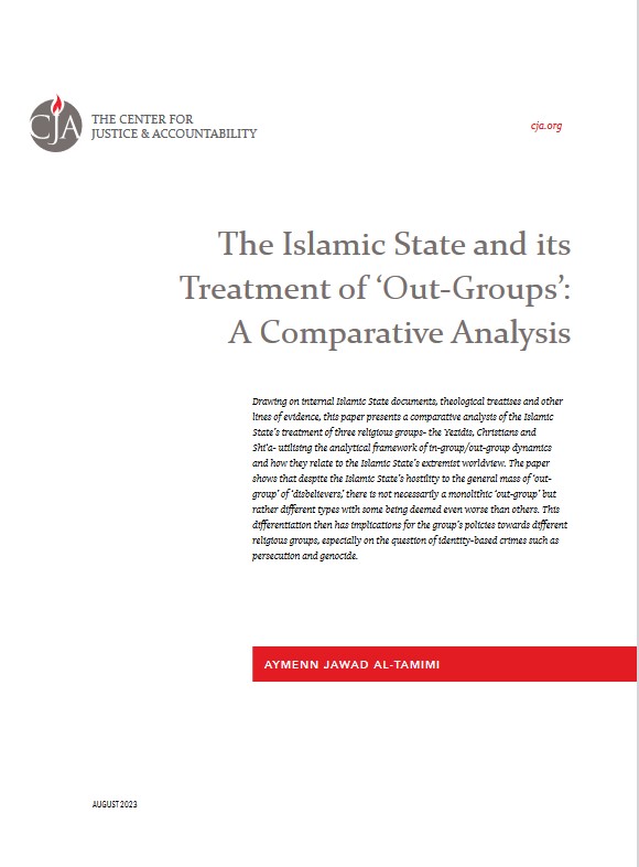Shi'a- utilising the analytical framework of in-group/out-group dynamics and how they relate to the Islamic State's extremist worldview. The paper shows that despite the Islamic State's hostility to the general mass of 'out- group' of 'disbelievers,' there is not necessarily a monolithic 'out-group' but rather different types with some being deemed even worse than others. This differentiation then has implications for the group's policies towards different religious groups, especially on the question of identity-based crimes such as persecution and genocide.