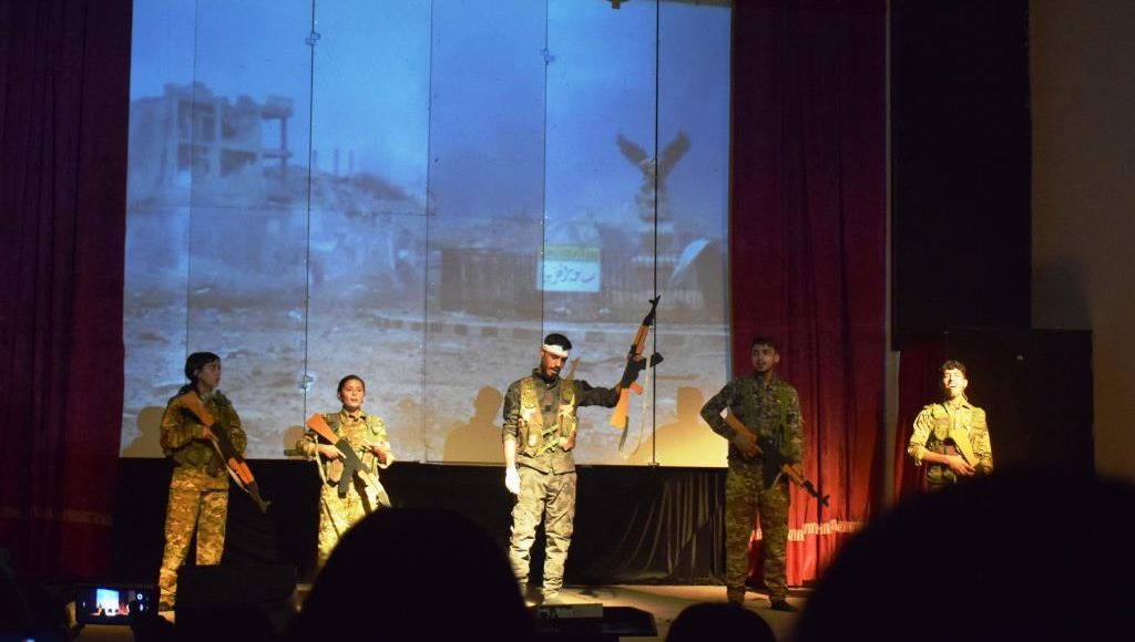 تستمر فعاليات مهرجان “آرين… جدائل السلام” في يومه السادس على التوالي، الذي أقيم في مدينة كوباني في الخامس من تشرين الأول الجاري، بنسخته الثانية، تخليدا وتكريما لمقاومة الباسلة والمناضلة #آرين ميركان#، الذي حمل شعار “هنا من الأمل من يجب أن يعرض”، على خشبة مسرح باقي خدو للثقافة والفن بمدينة كوباني، بتقديم تسعة عروض مسرحية من مختلف مدن شمال وشرق سوريا.