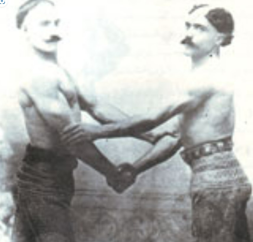 ففي احد الاحتفالات القديمة، هناك صورة تمثل المصارع “صادق الصندوق” وهو يقوم بتمزيق (صينية نحاسية) الى قطعتين، ويشاهد خلفه في الصورة مجموعة من المع المصارعين العرب والكورد والتركمان، ومنهم: (الحاج ظاهر مسعود، ورضا عنجر، وحسين القندرچي، وتوفيق الكركولي، ومهدي زنو، وحميد عبد علي، ومحمد حسين البصراوي، ومجيد كسل، وصبري الجنابي).