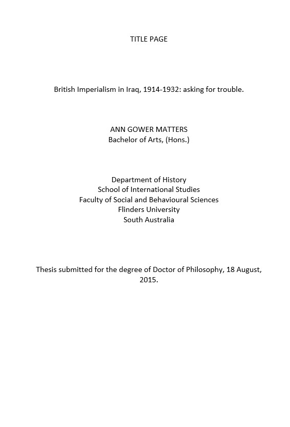 Title: British Imperialism in Iraq, 1914-1932: asking for trouble