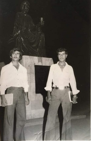 کەسایەتییەکانی ناو وێنەکە: لە ڕاستەوە: شەهید دکتۆر کاوە عەبدوڵڵا ئەو کات خوێندکاری پەیمانگای پزیشکی بووە لە بەغدا، #چاپوک سەید عومەر# خوێندکاری پەیمانگای نەوتی بەسڕە، بە ڕێکەوت لە بەغدا یەکترییان بینیوە.