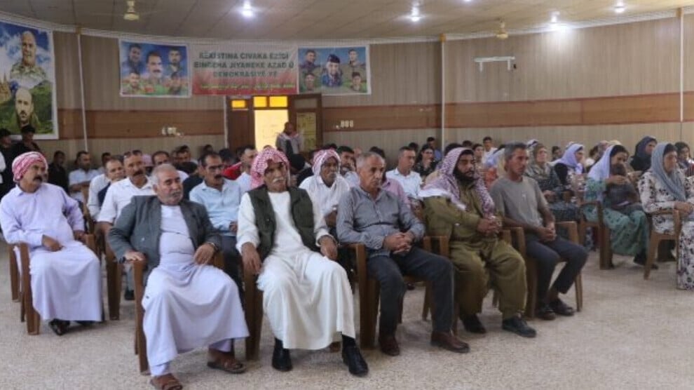 وأشار حسين سعدو بشكل خاص الى تاريخ 9 تشرين الأول التي أصبحت تاريخ المؤامرة والهجوم والمعاهدة ضد الشعوب المسالمة وقال: محاضرتنا اليوم تتعلق باتفاقيات التاسع من شهر تشرين الأول. نريد ان ننوه من الان الى المشاركة في مسيرة التاسع من الشهر الجاري والذي يتم العمل على تنظيمه. يجب ان تكون مسيرة هذه السنة أوسع من السنوات السابقة. التاسع من شهر تشرين الأول هو يوم المؤامرة على شنكال. عندما تم التوقيع على الاتفاقية لم يحضر أحد من شنكال فيها. لأنهم لو كانوا مشاركين فيها سيرفضون كل ما يتعارض مع مصالحنا. تعلمون ان مؤامرة التاسع من شهر تشرين الأول كلها متعلقة ببعضها البعض. كانت هذه المؤامرة ضد القائد وروجافا وفي النهاية على مدينة شنكال. ونفذوا هجمات على المدن التي يسكنها الايزيديين في روجافا في نفس اليوم