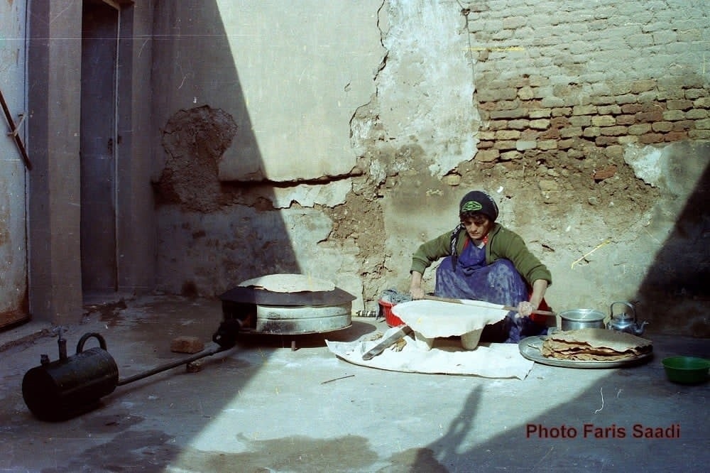 وێنەکە: ژنێک خەریکی نانکردنە لە #قەڵاتی هەولێر# لە ساڵی 1991دا.