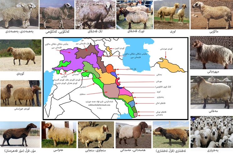 ئەو مەڕانەی لە کوردستان ئەژین تەنیا مەڕی کوردی و حەمدانی نین. ئەمە نەخشەی کوردستانی گەورەیە و لە ناویا هەموو جۆرەکانی مەڕی کوردستانی تیایە. لەدەوری نەخشەکەش وێنەی هەر جۆرێک لەو مەڕانەم داناوە. هەندێک لە جۆەکان وێنەیانم دەست نەکەوت وەک مەڕی کوردی نەخچیوان.