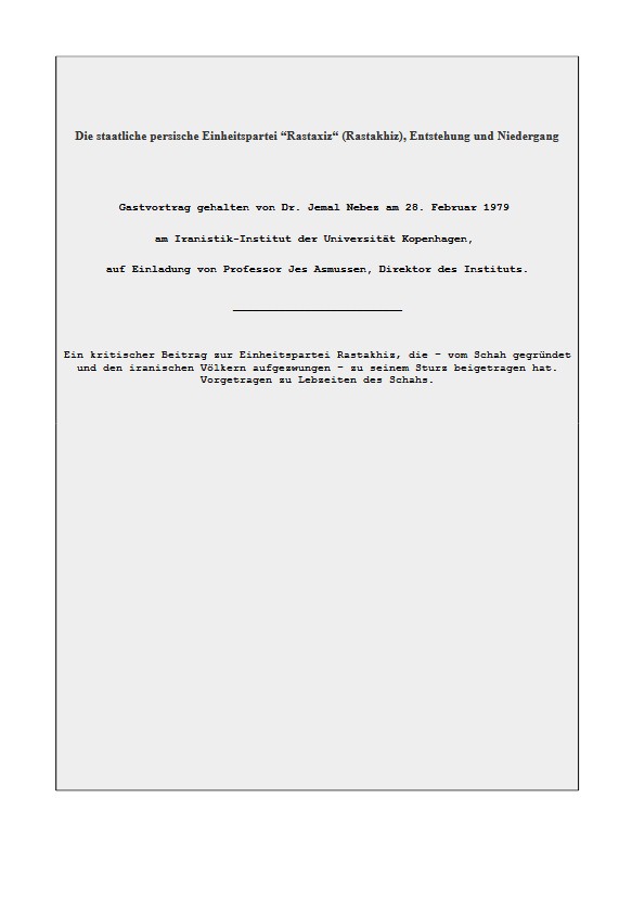 Die staatliche persische Einheitspartei “Rastaxiz“ (Rastakhiz), Entstehung und Niedergang