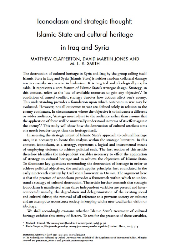 Iconoclasm and strategic thought: Islamic State and cultural heritage in Iraq and Syria