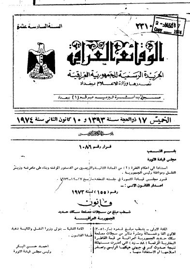 الوقائع العراقیة لسنة 1974